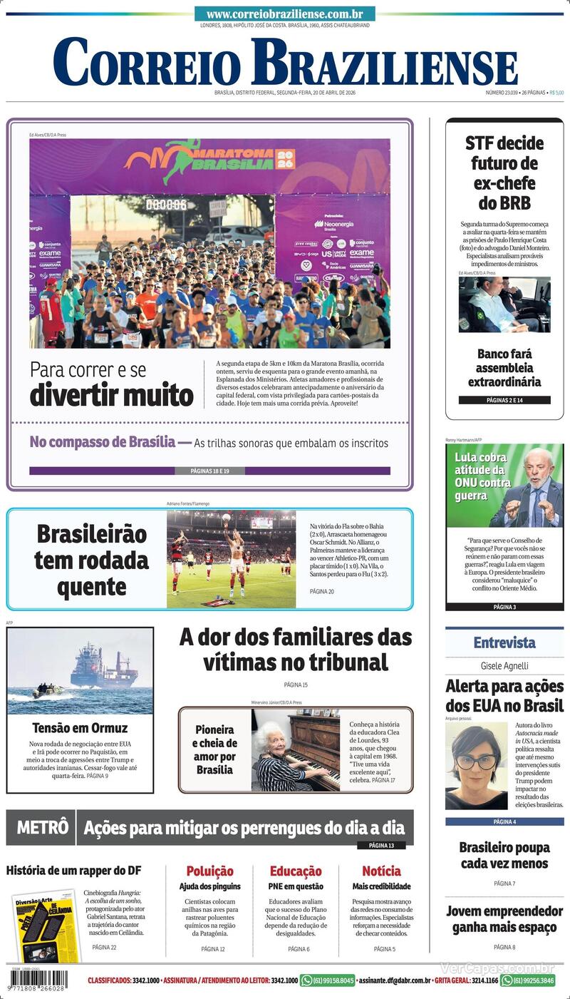 CAPA DO JORNAL CORREIO BRAZILIENSE DE HOJE