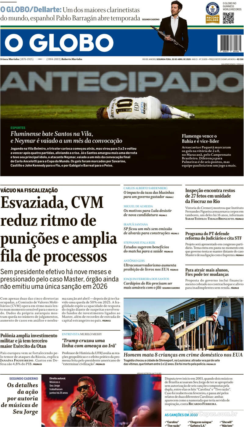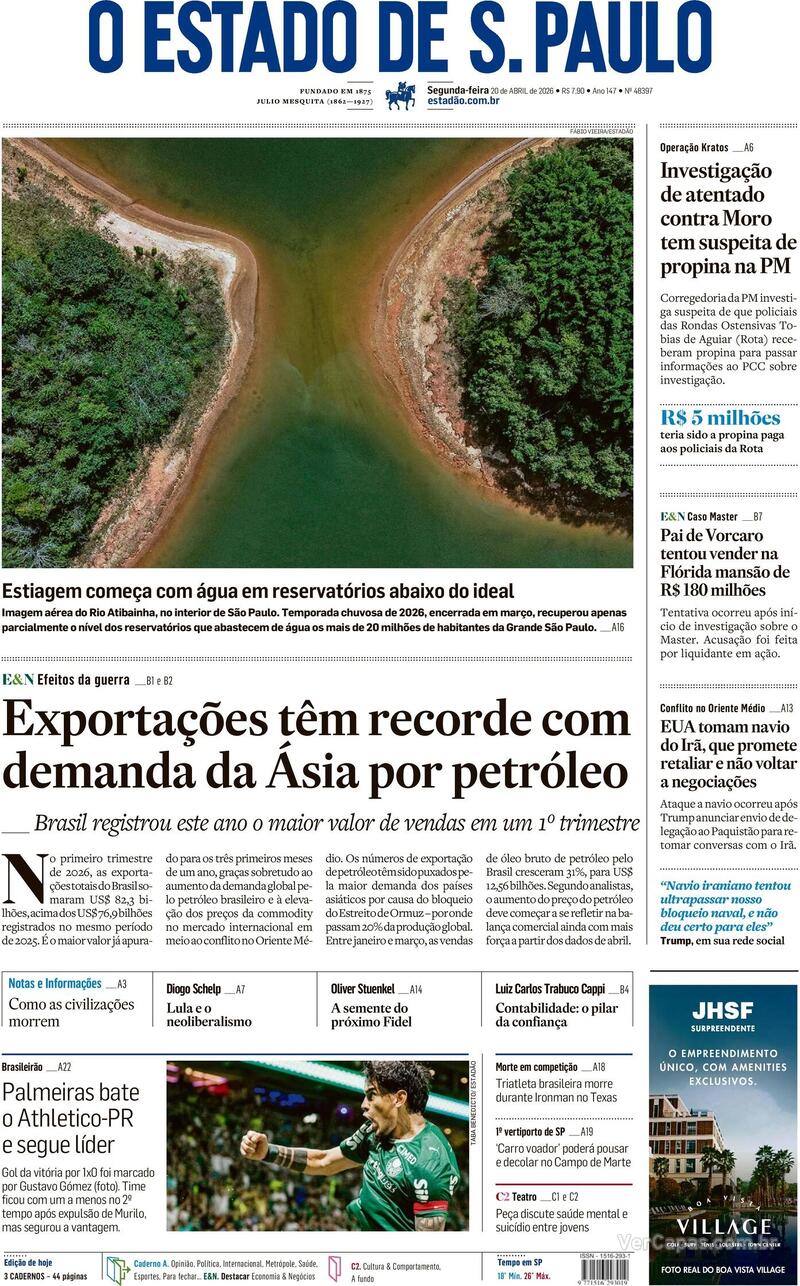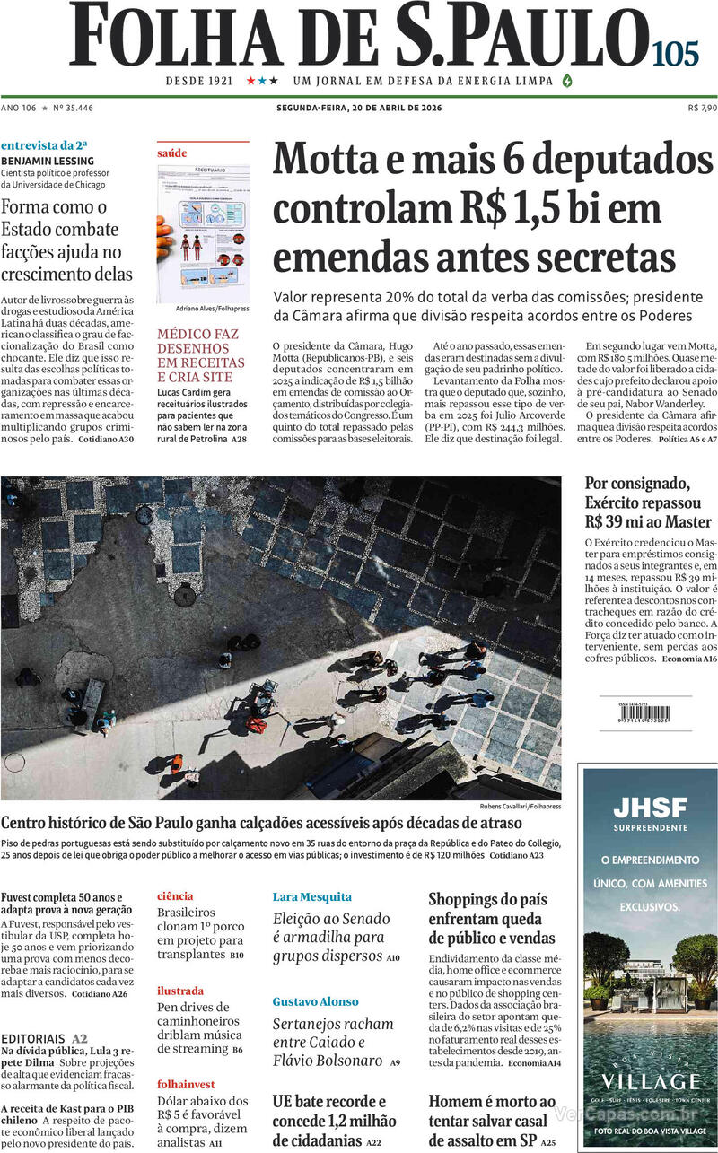 CAPA DO JORNAL FOLHA DE S. PAULO DE HOJE