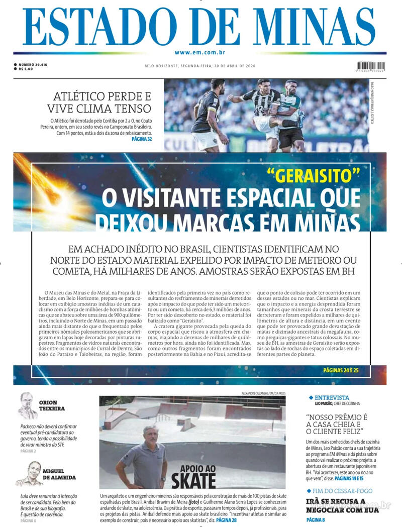CAPA DO JORNAL A TARDE DE HOJE