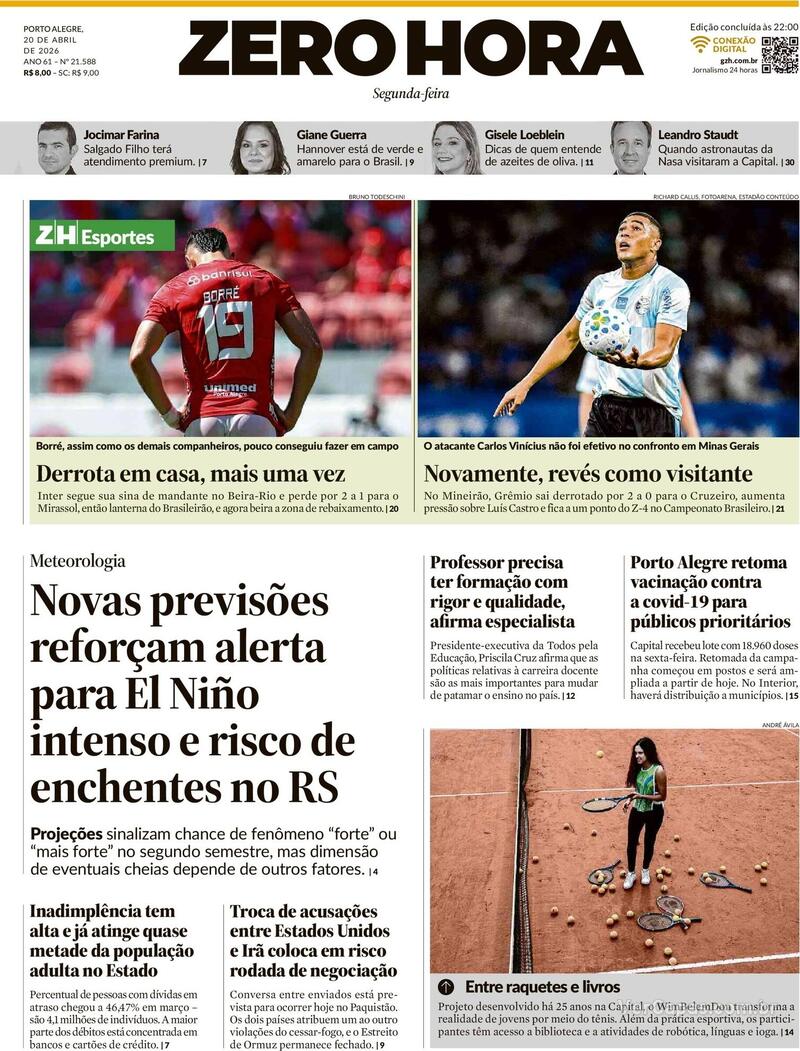 Fundado em 1964, em Porto Alegre, o jornal Zero Hora pertence ao Grupo RBS, que também controla emissoras de rádios e TVs no Rio Grande do Sul.